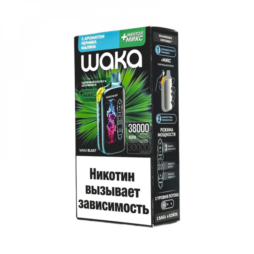 WAKA BLAST 38000 Hard - Черника малина + ментол микс - купить в Ноябрьске